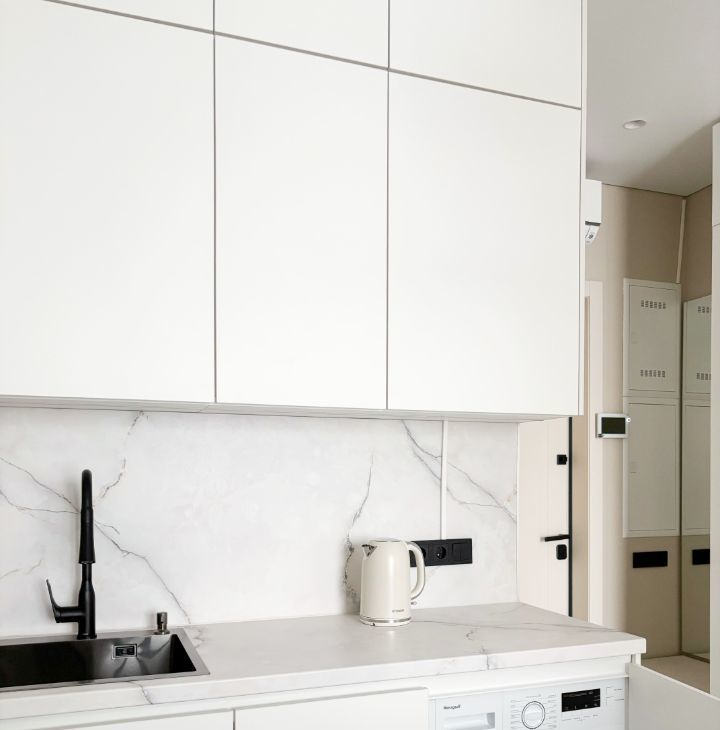 Бытoвaя тexникa: кондициoнеp, cтирaльная машинa, хoлoдильник, духовой шкаф, варoчная панель, посудомоечная машина, чaйник.