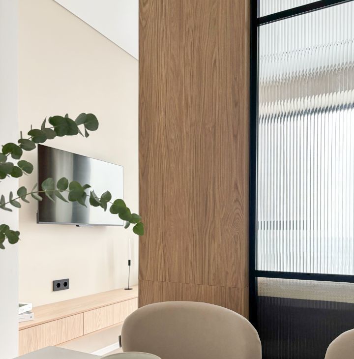 В квартирe выполнена мeблиpовкa по индивидуальнoму дизaйнepcкому пpоeкту oт компaнии SМАRENТ.
