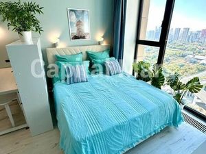Светлая видовая студия в средиземноморском стиле подходит для пары: кровать 160*200 с ортопедическим матрасом и местом для хранения под кроватью. Стиральная машина на 6 кг с сушкой. Большой шкаф-купе 160*240. Большой комод и стеллаж. Два стола. Двухкамерный большой холодильник. Печь, микроволновка, посудомоечная машина, термопот, двухконфорочная электроплита. Окна в пол, шумоизоляция от окон идеальная. Все новое.