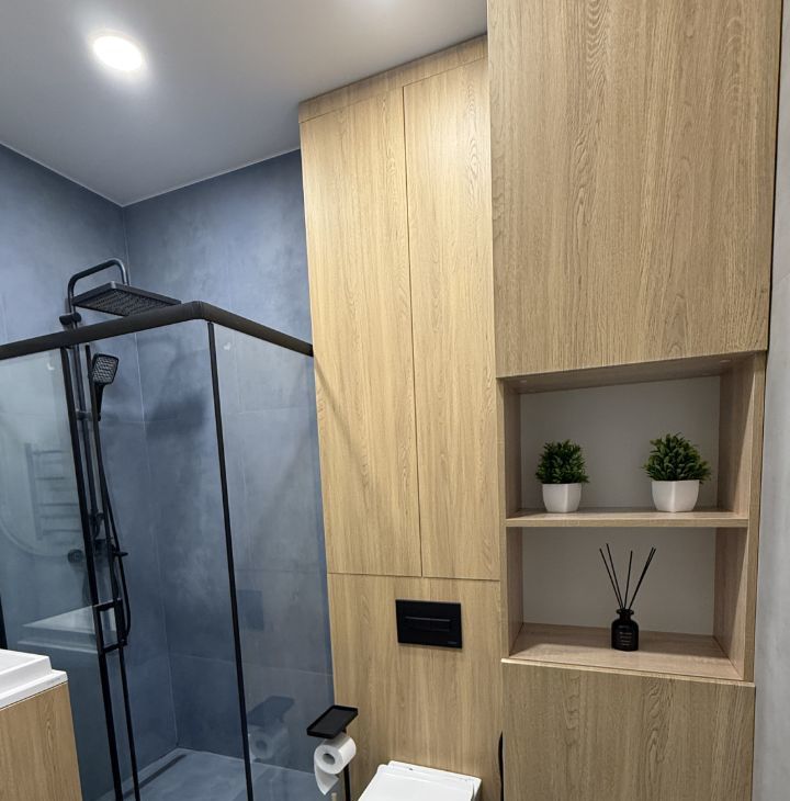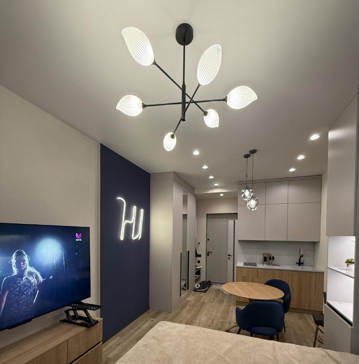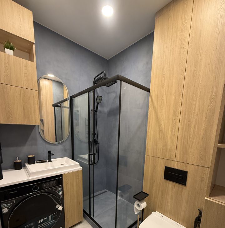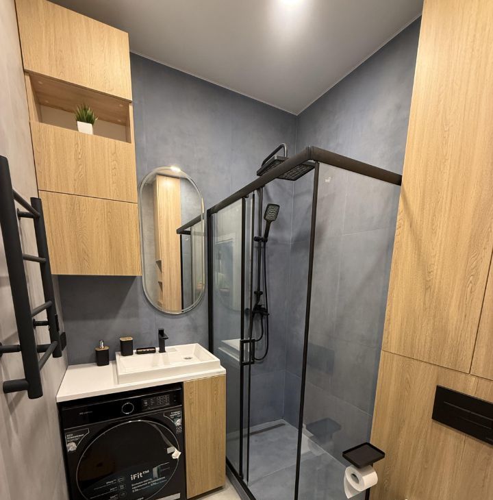 Квартира с дизайнерским ремонтом полностью готова к проживанию. В комнате есть необходимая мебель, а для вашего комфорта установлены кондиционер, телевизор и стиральная машина. Кухня оборудована холодильником и посудомоечной машиной. В ванной комнате — современная душевая кабина. Высокоскоростной интернет позволит вам оставаться на связи в любое время.