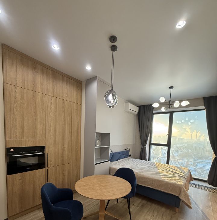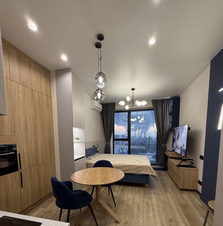 Сдаётся в аренду стильная студия площадью 27 кв. м на 33-м этаже в новом доме 2024 года постройки.