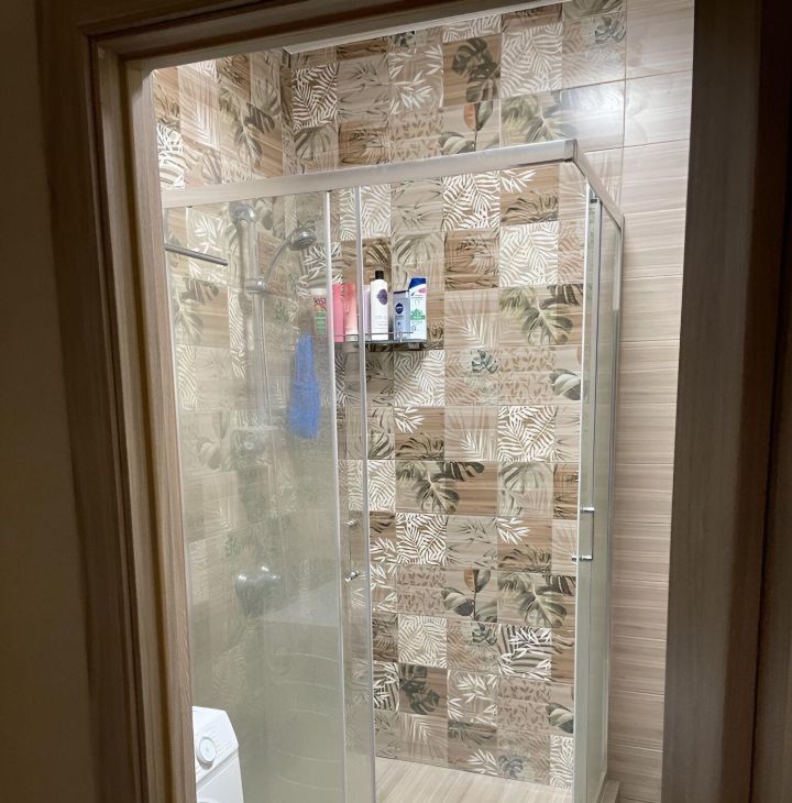 Санузел совмещенный, оборудован душевой кабиной и стиральной машиной. В прихожей имеется встроенный шкаф для одежды.