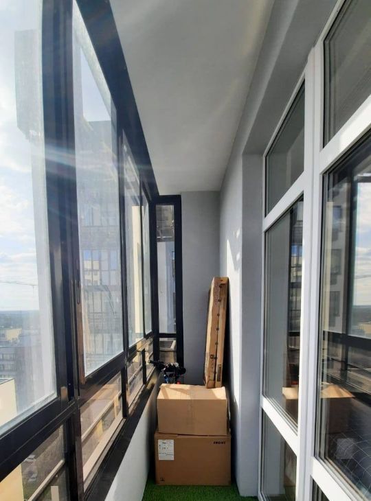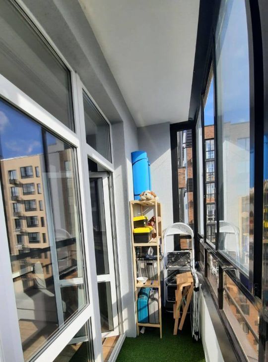 Просторная планировка с высокими потолками. Остекленный балкон с видом на внутренний двор.