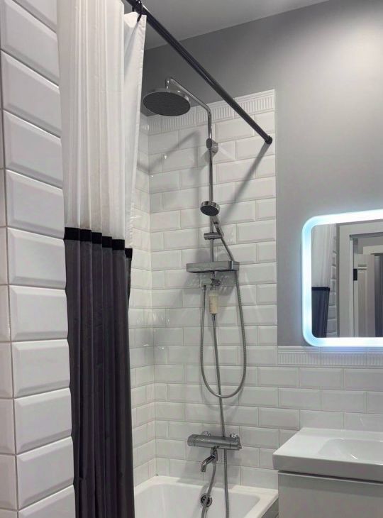 • Совмещенный, в современной отделке ванна, стиральная машина, сушилка для одежды, теплый пол.