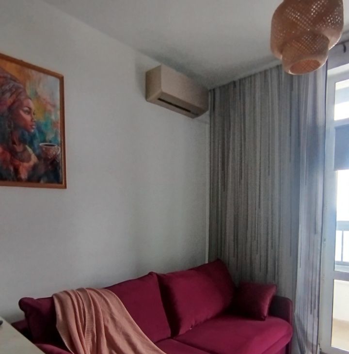 Интернет, телевизор 43 дюйма, работает через Wi-Fi ( rutube, кинопоиск оплачен). Система очистки питьевой воды Аквафор, кондиционер, кофемашина, холодильник с функцией No Frost, варочная панель, духовка, микроволновая печь, вертикальный пылесос, стиральная машина на 4 кг, класс стирки А.