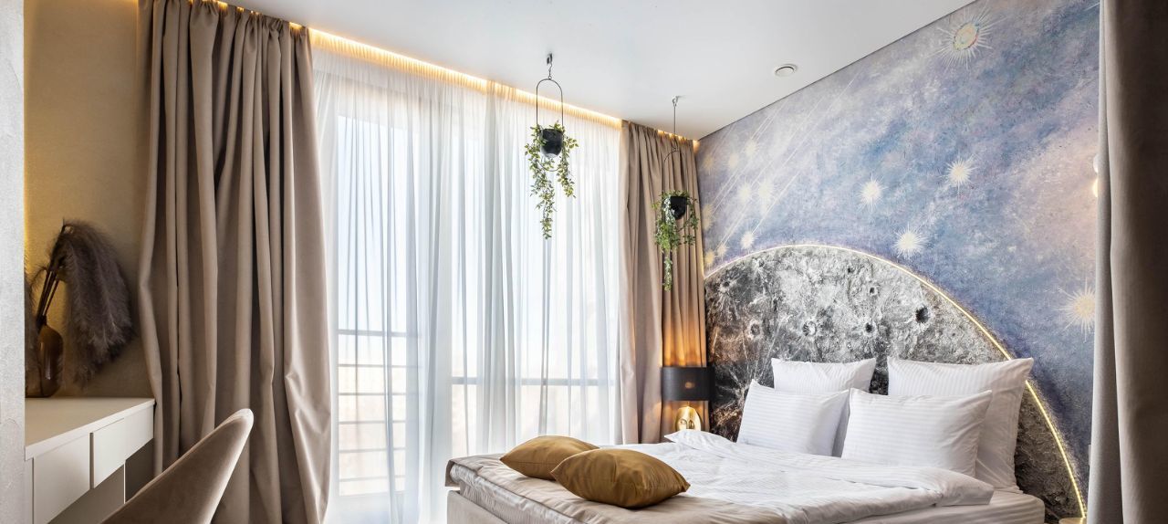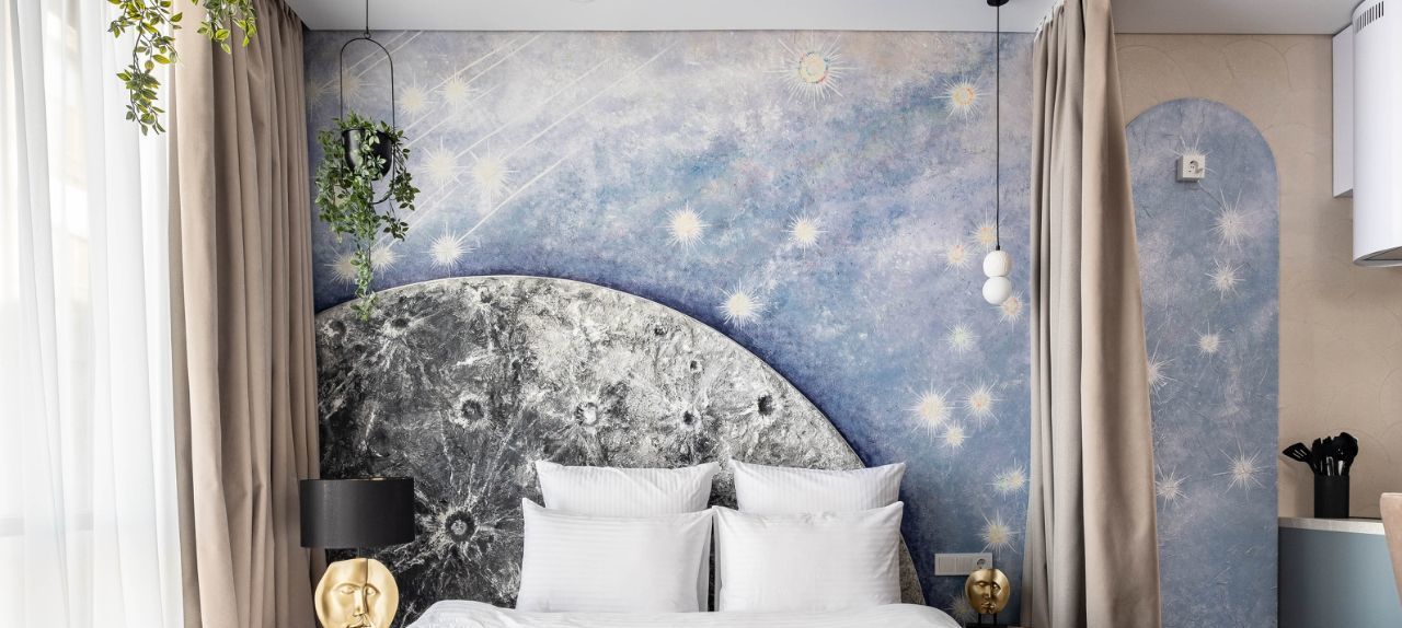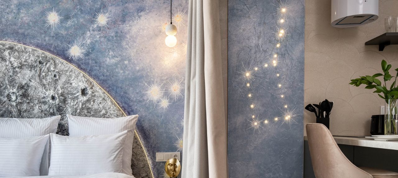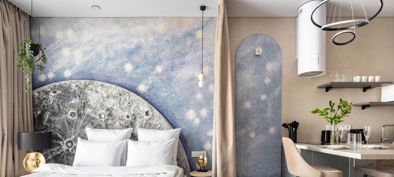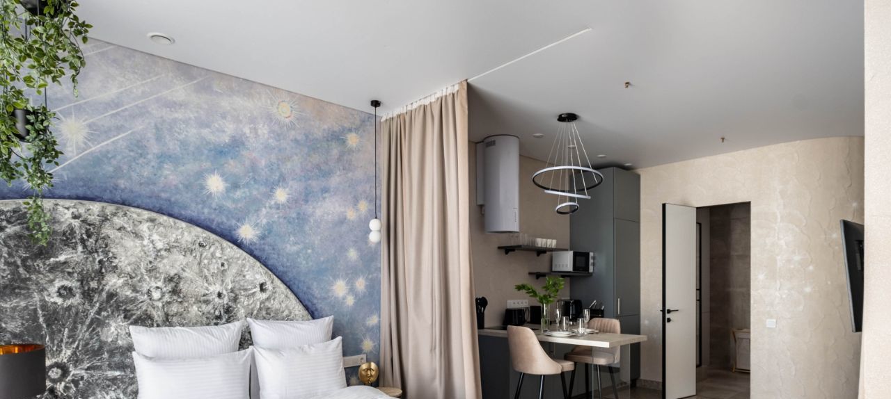 • Общая информация: Просторный апартамент с новой мебелью и уникальными предметами декора на лунную тематику.