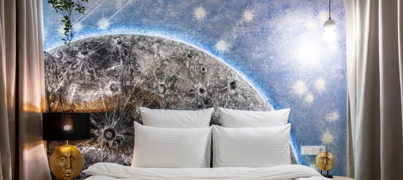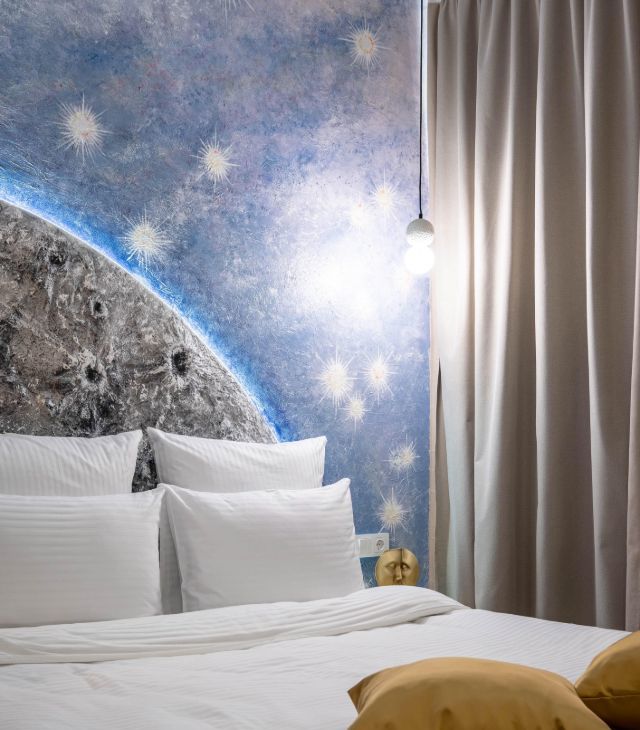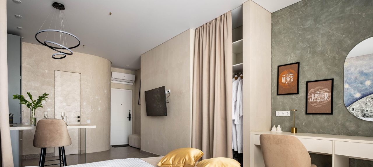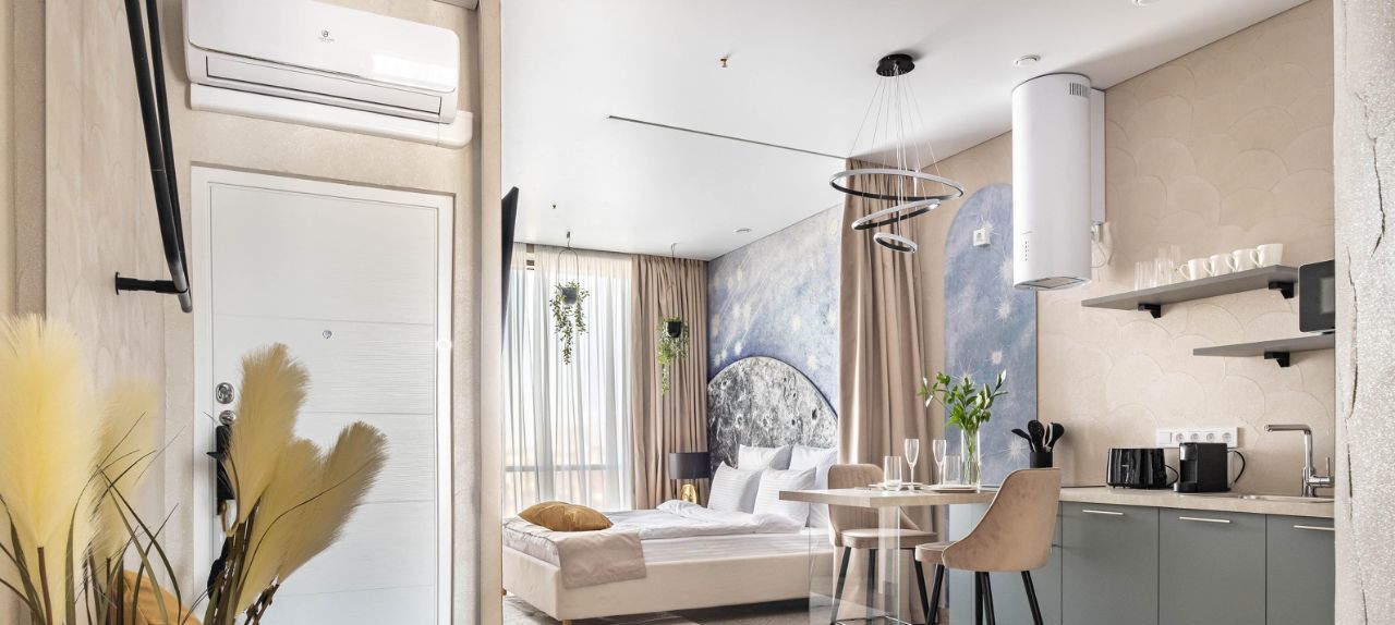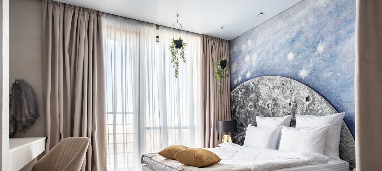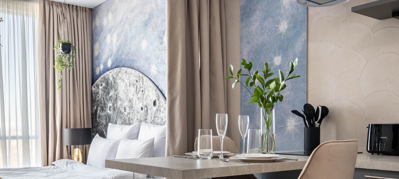 • Общая информация: Просторный апартамент с новой мебелью и уникальными предметами декора на лунную тематику.
