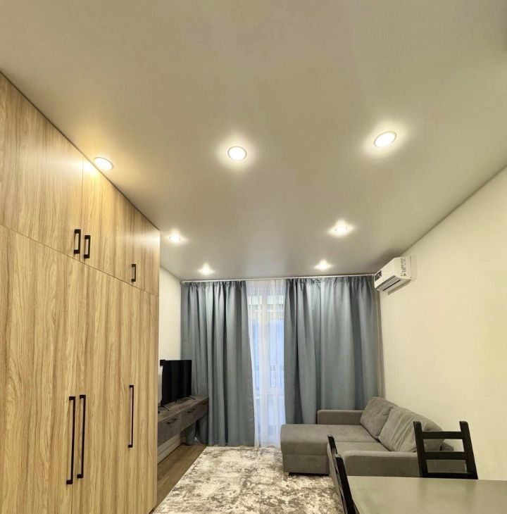 Мебель: Вся необходимая мебель для комфортного проживания: диван, вместительный шкаф, кухонный гарнитур, техника,стиральная машина, кондиционер, стол и стулья.