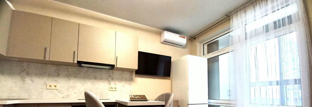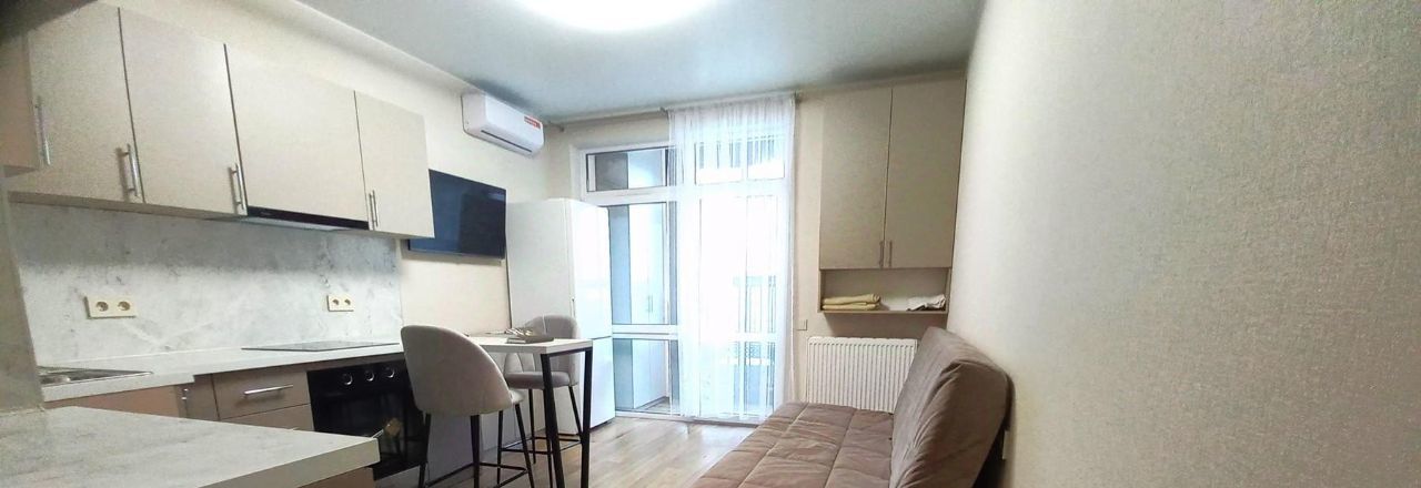 Новый дом 2022г. Квартира - студия, с лоджией 24м2 примерно. В 12 мин пешком от метро Прокшино. Кухонный гарнитур встроенный + ВСЯ бытовая техника (кроме ПММ). Все новое. Санузел совмещенный. Полы с подогревом. Гардеробная. Лоджия застекленная с шкафом. На длительный срок!