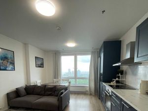 Сдаётся уютная студия с дизайнерским ремонтом в современном жилом комплексе. Квартира расположена на 17-м этаже нового монолитного дома 2022 года постройки. Общая площадь — 26 кв. м, жилая — 23 кв. м. Высокие потолки 2.84 метра создают ощущение простора. Окна выходят во двор, поэтому в квартире тихо и спокойно.