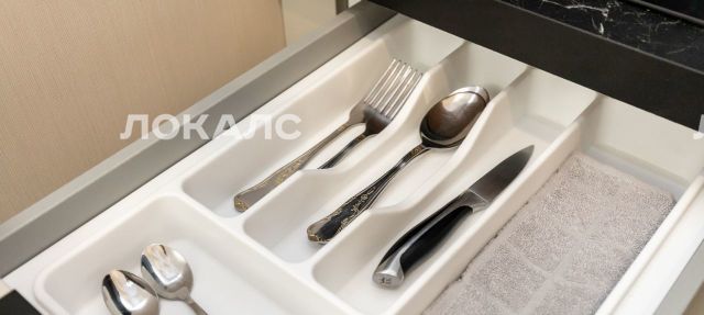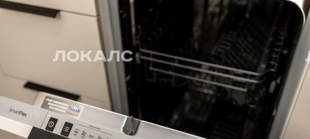 В кухонный гарнитур встроена посудомоечная машина, а также есть вся необходимая бытовая техника для комфортной жизни (холодильник, варочная панель, микроволновая печь, телевизор, стиральная машина).