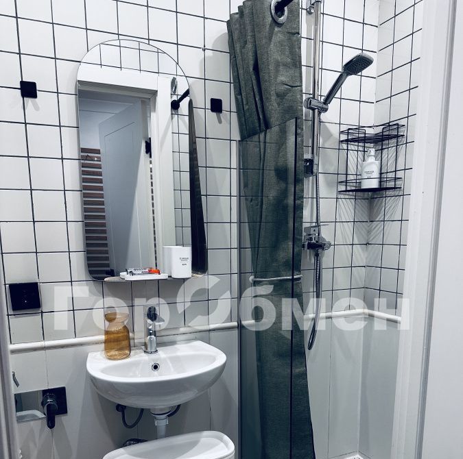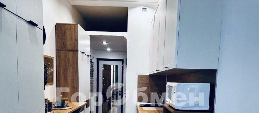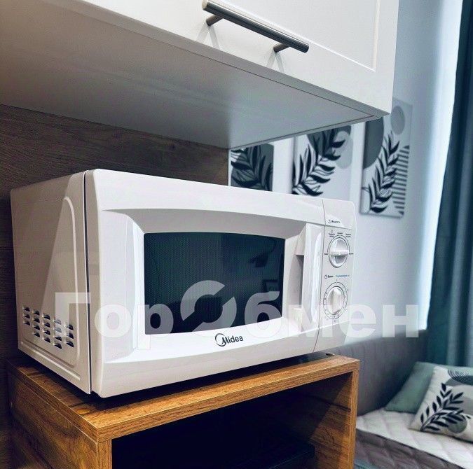 входная дверь с зеркалом во весь рост, совмещенный оборудованный санузел, два вместительных шкафа для вещей, удобная кровать, письменный стол, телевизор, кухонная зона с холодильником, стиральной машинкой, свч, настольной электрической плиткой для готовки, чайником и кухонными принадлежностями. Также имеется вместительная антресоль, куда можно положить габаритные вещи.