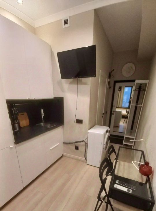 Хорошая студия, с ремонтом. Вся мебель и техника современные. Жилое пространство органично разделено на просторные зоны комфорта: уютный уголок для сна и отдыха; удобная кухня; просторная ванная комната. Светло, стильно, тихо, комфортно и функционально во всех отношениях. Квартира для молодых людей, привыкших много работать и комфортно отдыхать. Презентабельный подъезд с охраной. Развитая инфраструктура. До метро 5 минут пешком.