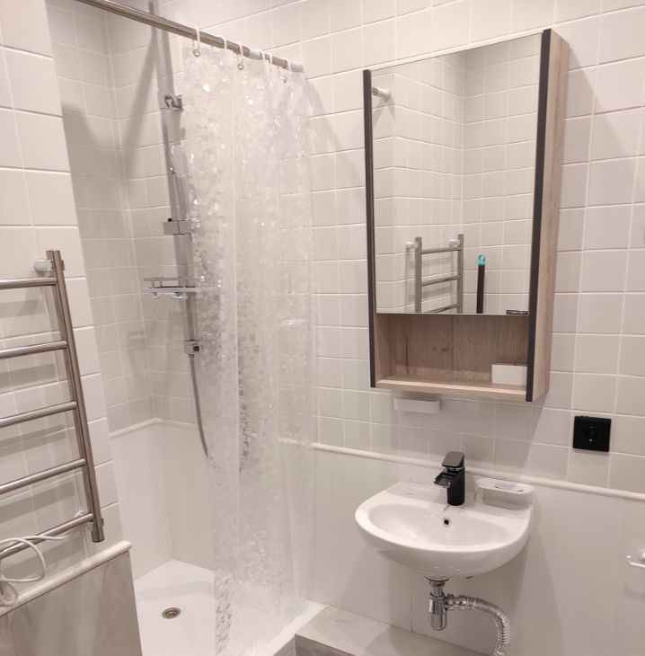 Внутри вас ждет полностью меблированная комната. В квартире есть все необходимое для комфортного проживания: холодильник, телевизор и стиральная машина. Ванная комната оснащена современной душевой кабиной. Окна квартиры выходят во двор, обеспечивая тишину и уют.
