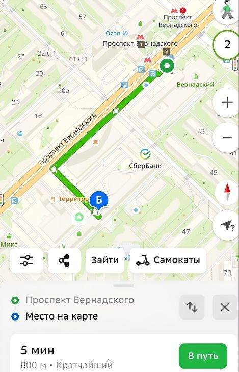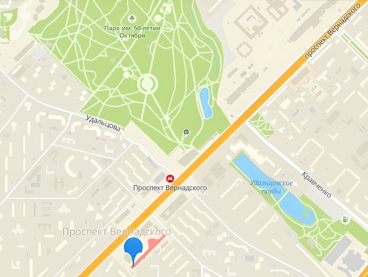 В 5 минутах ходьбы от станции метро проспект Вернадского.