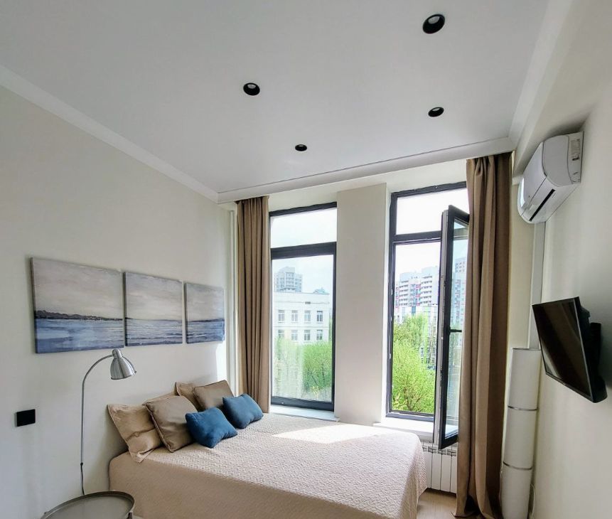 Предлагаем в аренду уютную студию с высокими потолками и большими панорамными окнами в Комплексе ЛОФТ на Вернадского 41с1.