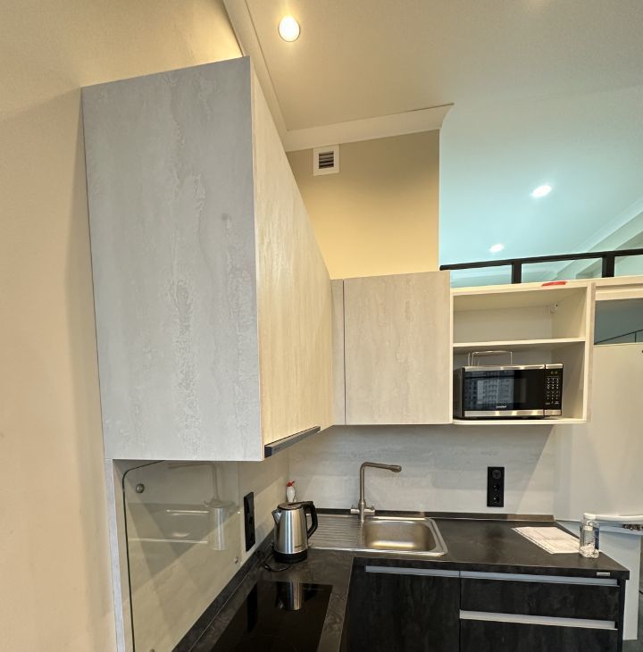 В апартаментах выполнен современный евроремонт, который создаёт атмосферу уюта и комфорта. В комнате и на кухне имеется вся необходимая мебель, а также установлены кондиционер, холодильник и телевизор. В ванной комнате находится душевая кабина и стиральная машина.