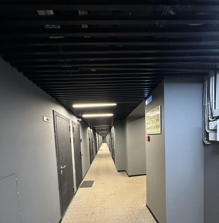 Дом находится в хорошем состоянии, оснащён двумя пассажирскими и двумя грузовыми лифтами, что делает перемещение по дому удобным. Для автомобилей предусмотрена наземная парковка рядом с домом.