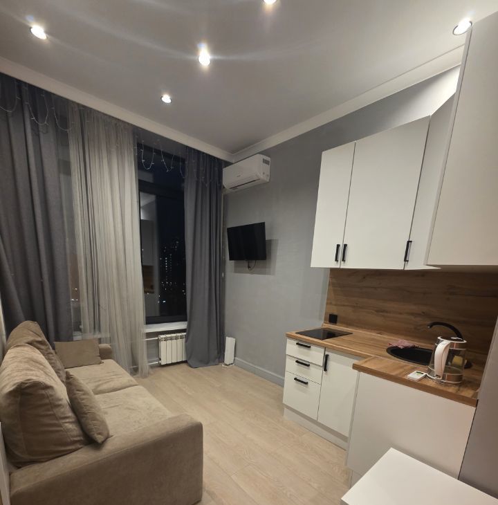 Сдаются в аренду замечательная студия дизайнерским ремонтом в 3 мин от м. Проспект Вернадского. Студия выполнена в современном стиле, с высокими потолками и большими панорамными окнами.