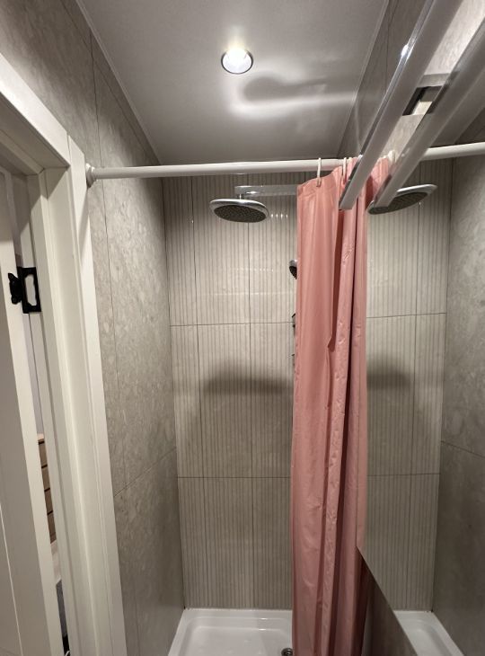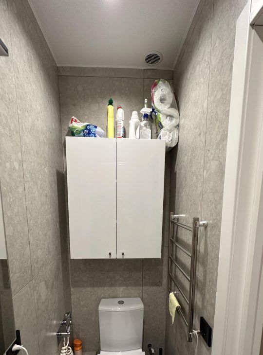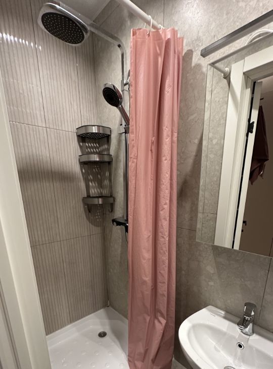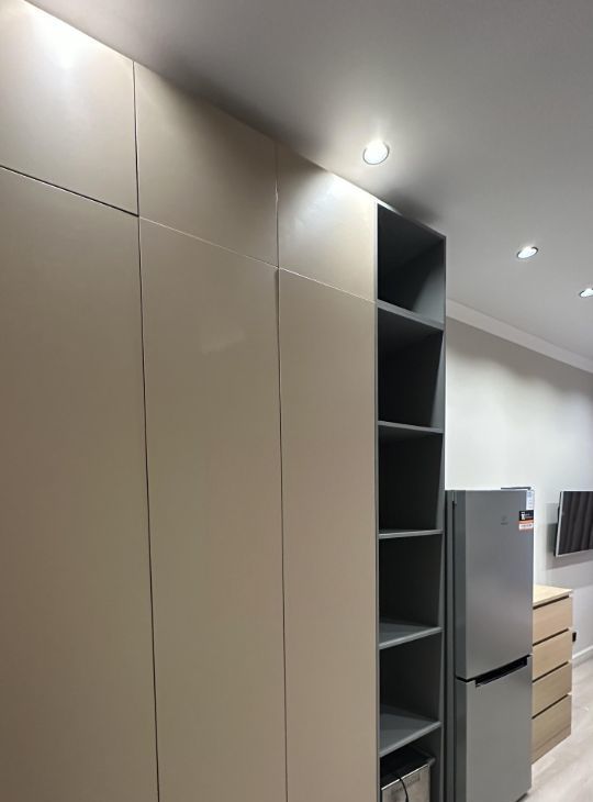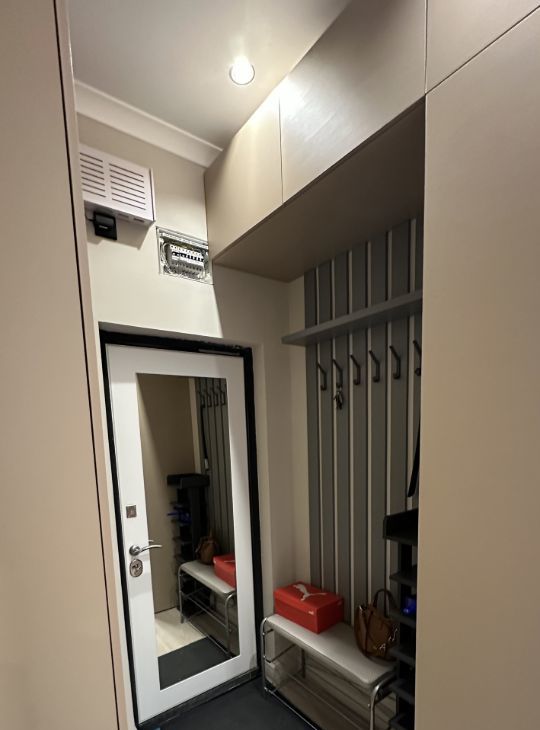 Имеется кровать с подъемным механизмом (под кроватью место для хранения вещей), кондиционер, телевизор, чайник, холодильник, духовка, индукционная плита, проведен интернет. Два больших шкафа до потолка (имеется стремянка), комод. Душевая кабина с тропическим душем и гигиенический душ.