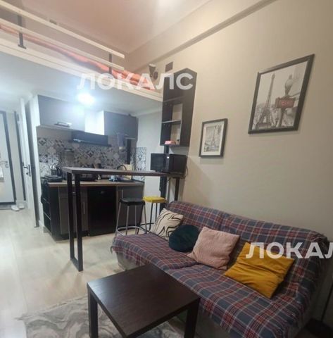 Сдаётся уютная студия в апартаментах в 6 минутах пешком от метро "Проспект Вернадского". Общая площадь квартиры — 25 кв.м, жилая площадь — 10 кв.м, кухня — 5 кв.м. Апартаменты расположены на 2-м этаже 10-этажного дома, с окнами, выходящими во двор. Высота потолков составляет 3,2 метра.