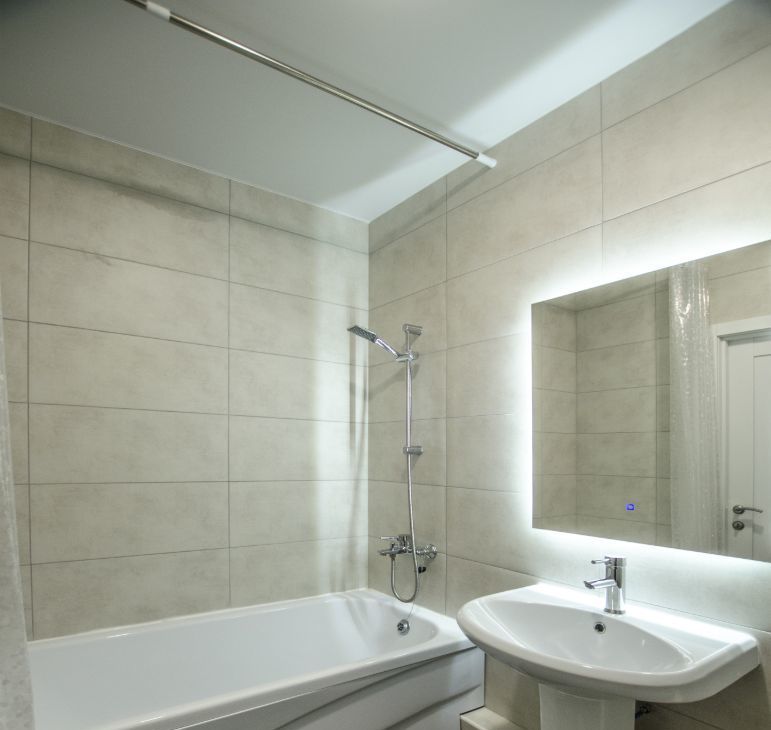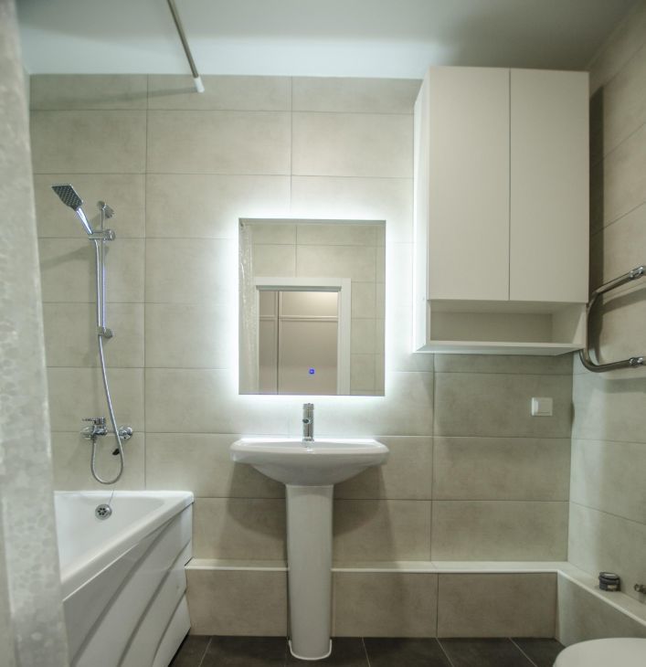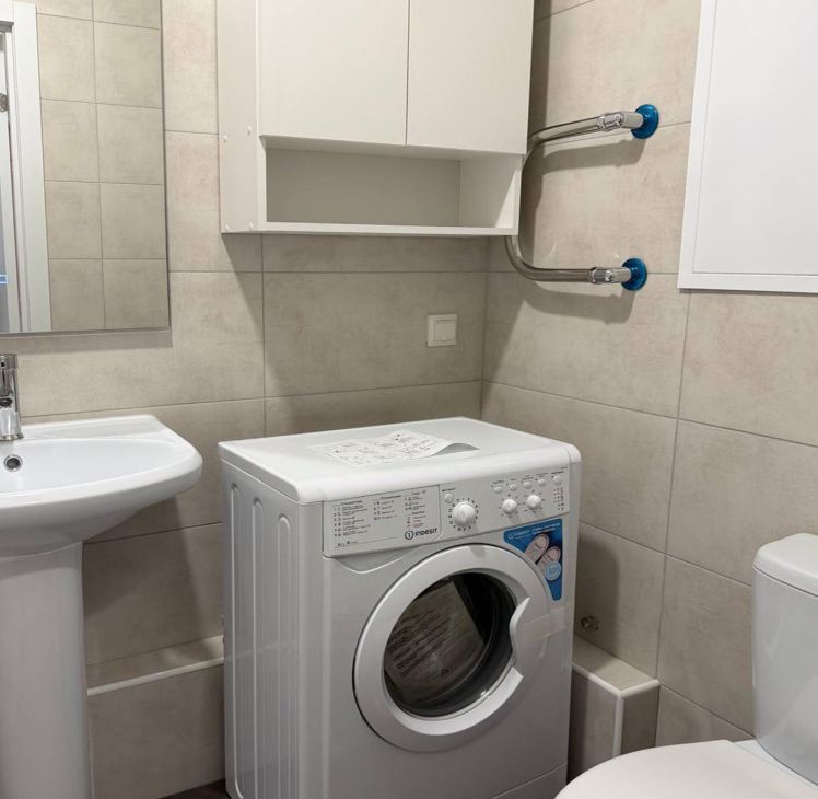 Совмещенный просторный санузел со стиральной машиной и плиткой в потолок. Ухоженный подъезд. Видеонаблюдение и охрана. Теплый монолитный дом. Во дворе предусмотрена спортивная площадка и парковочное пространство.