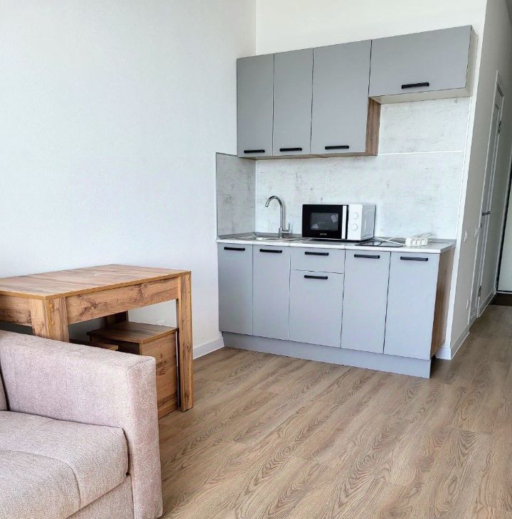 Площадь — 23 кв. м. Студия, вся мебель и техника в ней в идеальном состоянии. Идеально подходит для одного человека или пары. До станции метро Пятницкое шоссе — 8 минут пешком. Дом расположен рядом с лесным массивом, при этом вся необходимая инфраструктура в шаговой доступности. В доме шесть грузопассажирских лифтов.