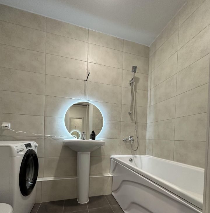 САНУЗЕЛ: плитка - керамогранит, стиральная машина автомат, зеркало с диодной подсветкой.