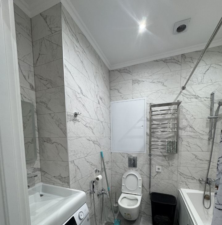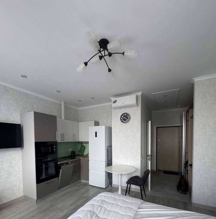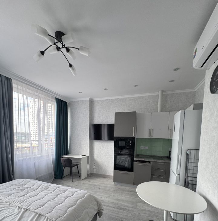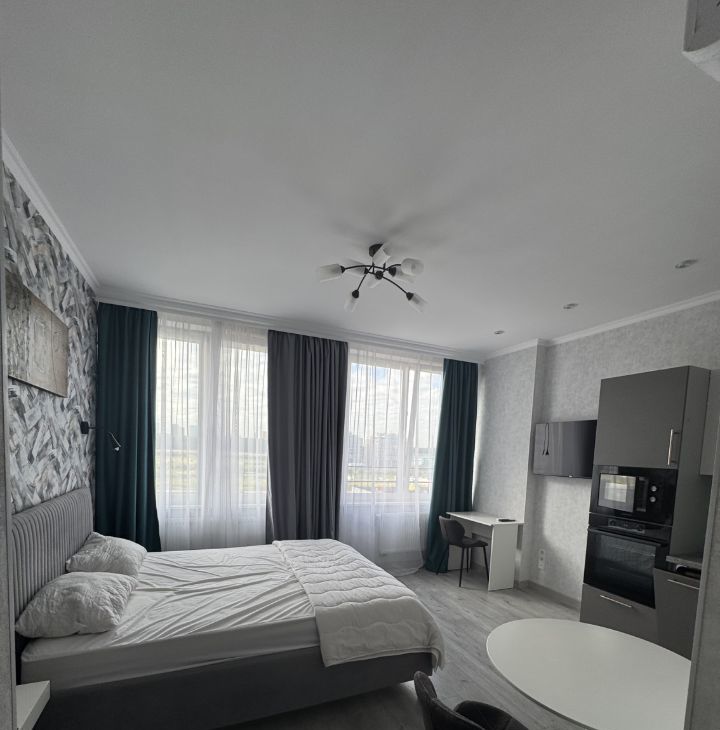 Квартира-студия с качественным дизайнерским ремонтом, полностью укомплектована необходимой мебелью и бытовой техникой: холодильник, посудомоечная машина, стиральная машина, смарт телевизор, микроволновая печь и духовой шкаф встроенные, электроплита, пылесос, гладильная доска с утюгом, проточная система "Электролюкс" (на время отключения горячей воды). Для удобства проживания в коридоре и сан.узле теплые полы. На кухне установлена система фильтрации воды "Аквафор", установлена система защиты от протечки воды "Аквастоп". В квартиру проведет интернет. Проживание строго без животных. Приходите, буду рада встречи с вами.