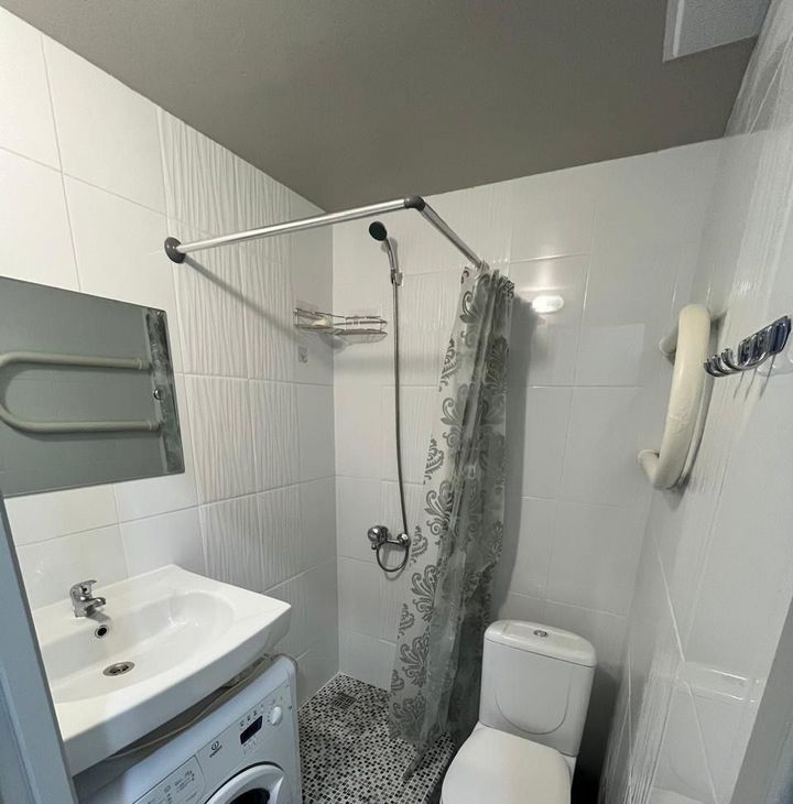 Квартира находится в районе с развитой инфраструктурой, рядом открытая парковка во дворе. В доме есть пассажирский лифт. Санузел совмещенный, выполнен в современном стиле.