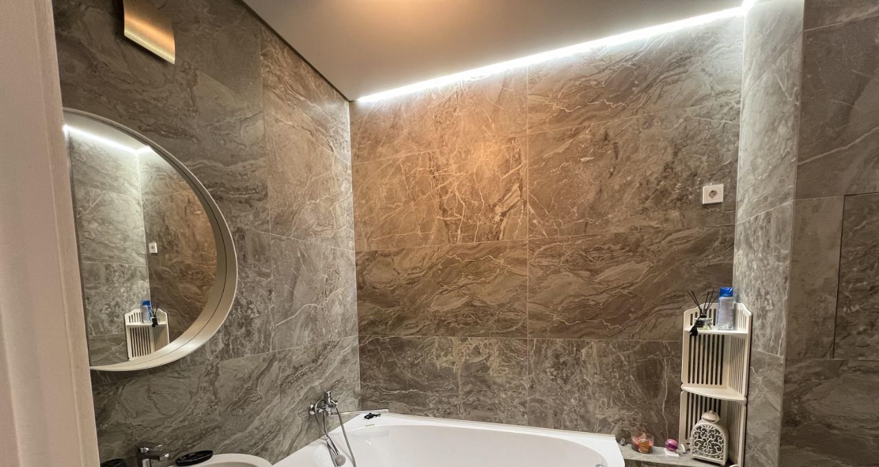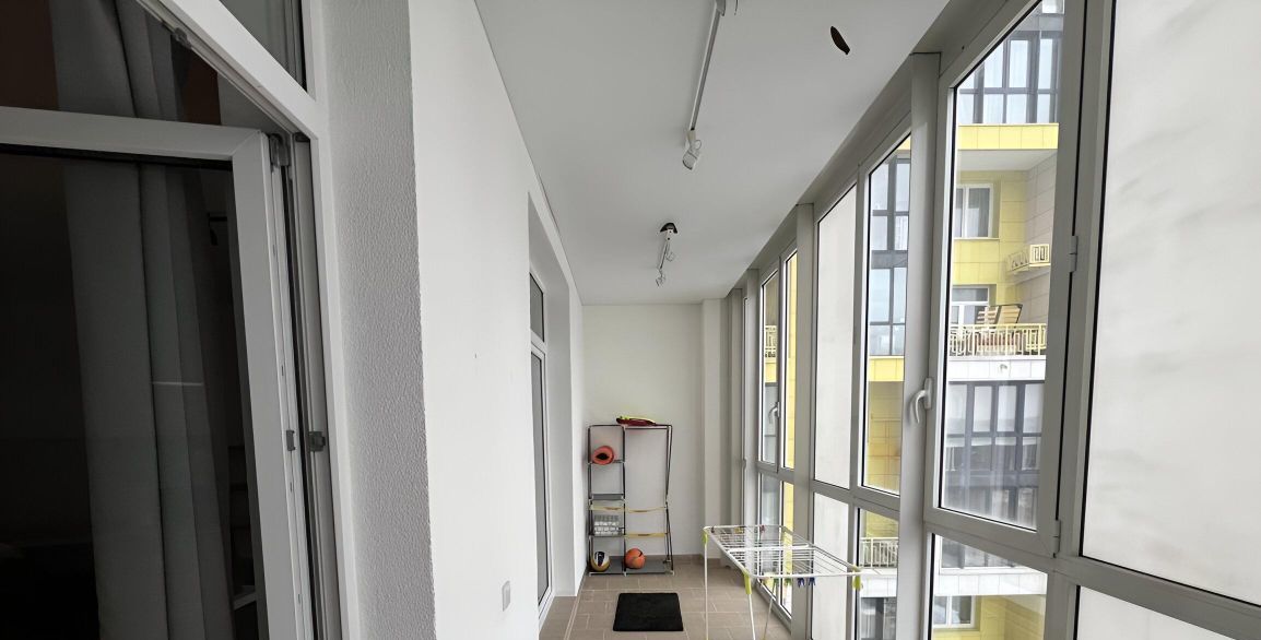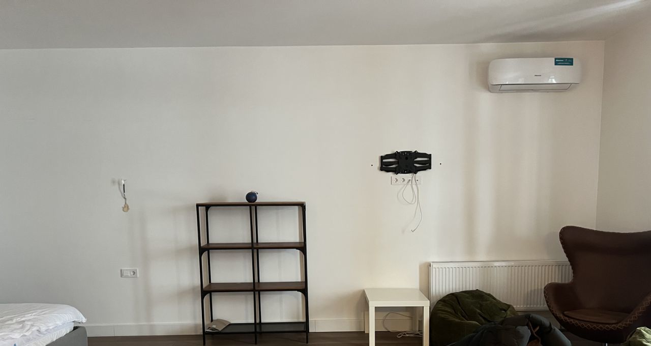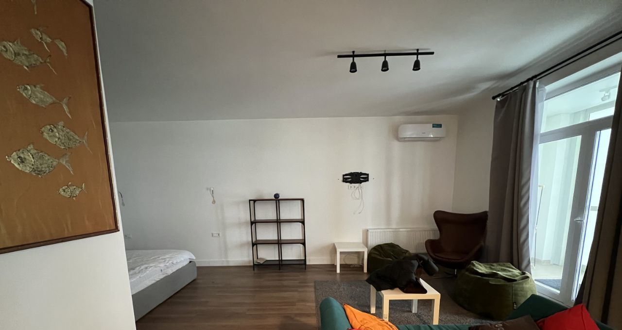 В квартире есть всё необходимое для комфортной жизни. Просторная кухня площадью 12 кв. м оснащена современной мебелью и техникой: холодильник, посудомоечная машина, стиральная машина и кондиционер. Студия обставлена мебелью, а окна выходят во двор, поэтому в квартире всегда уютно. Санузел совмещенный, оборудован ванной. Также есть лоджия для отдыха и хранения вещей.