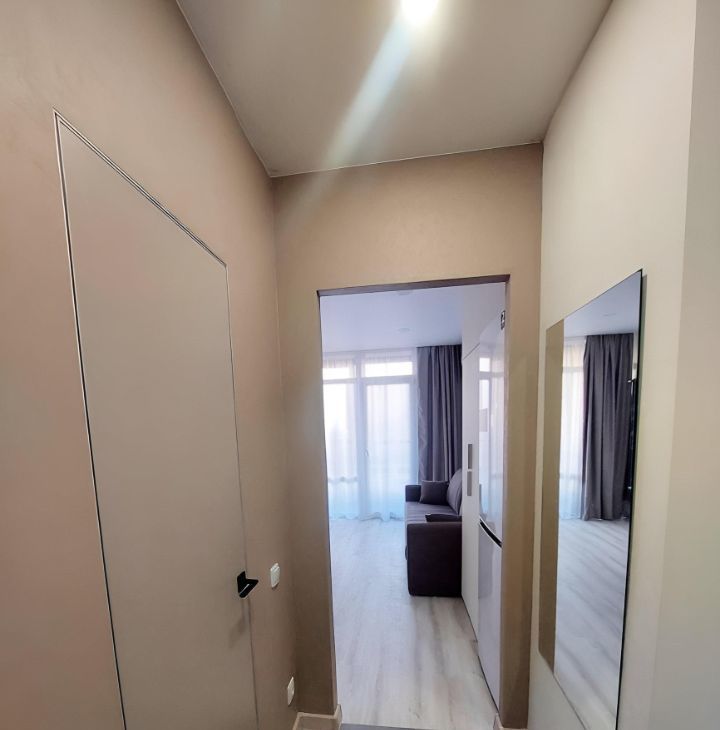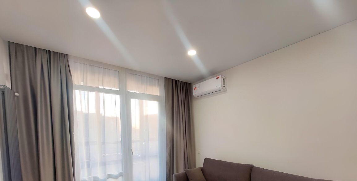 В квартире есть всё необходимое для комфортного проживания. Дизайнерский ремонт создает атмосферу уюта и стиля. В комнате установлена удобная мебель, что позволяет сразу въехать и начать жить. Есть кондиционер, холодильник и стиральная машина с функцией сушки. Санузел совмещённый с ванной.