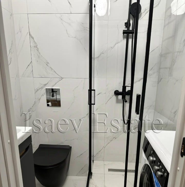 Удобный двуспальный диван, вместительный шкаф, хранение в коридоре, кухня с техникой, телевизор, стиральная машина, просторная лоджия.