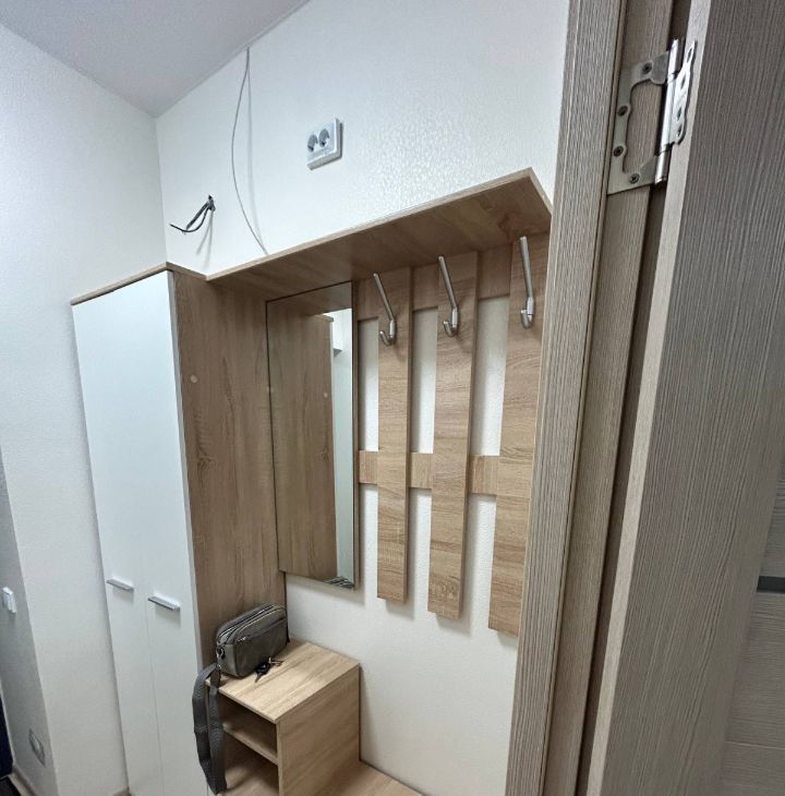 Продуманная система хранения в прихожей, аккуратный интерьер и рациональная планировка — комфортно для проживания одного человека или пары.