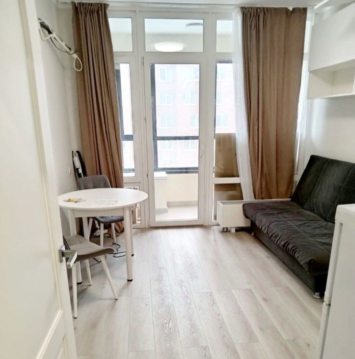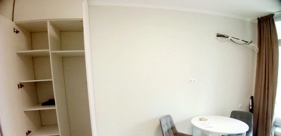 Квартира выполнена в светлых тонах с качественным современным ремонтом. Пространство продумано до мелочей: удобная планировка студии, большие окна, наполняющие помещение естественным светом, аккуратная отделка и приятная атмосфера уюта.