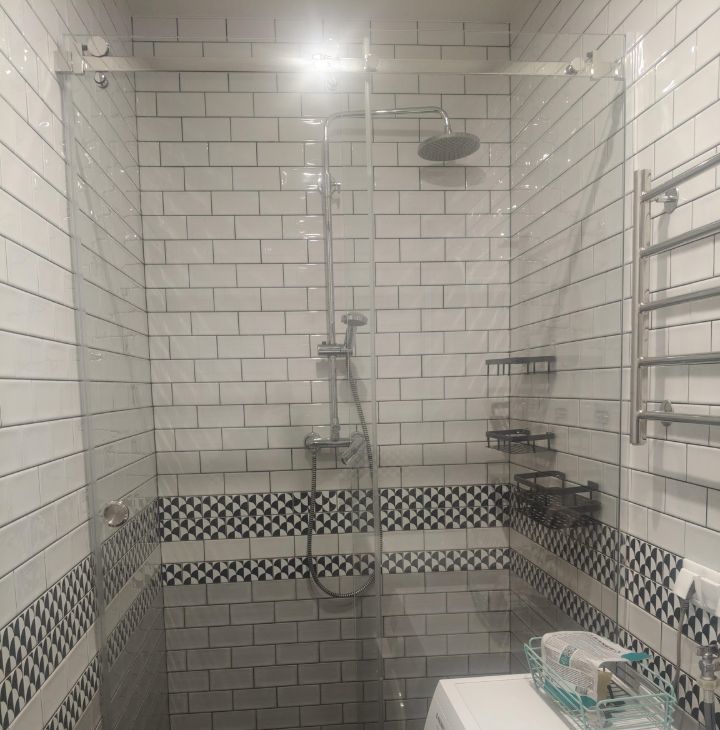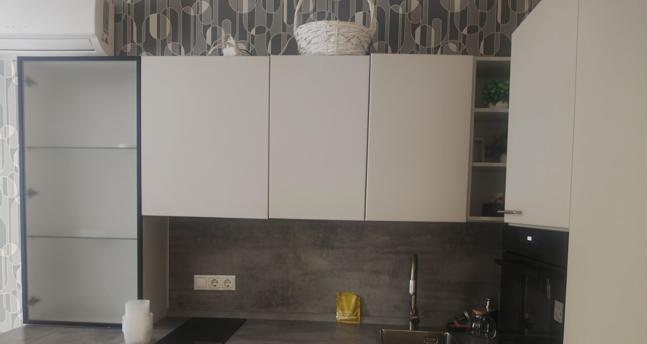 В квартире имеется вся необходимая мебель : стильный кухонный гарнитур, стол со стульями, телевизор, удобный диван-кровать, посудомойка, духовка, кондиционер. Есть комплект посуды. Стильный санузел с душевой, туалетом и стиральной машиной.