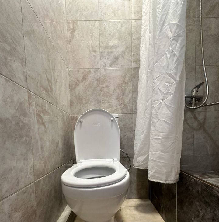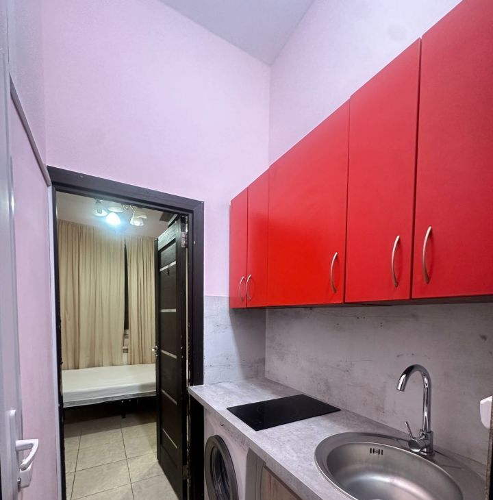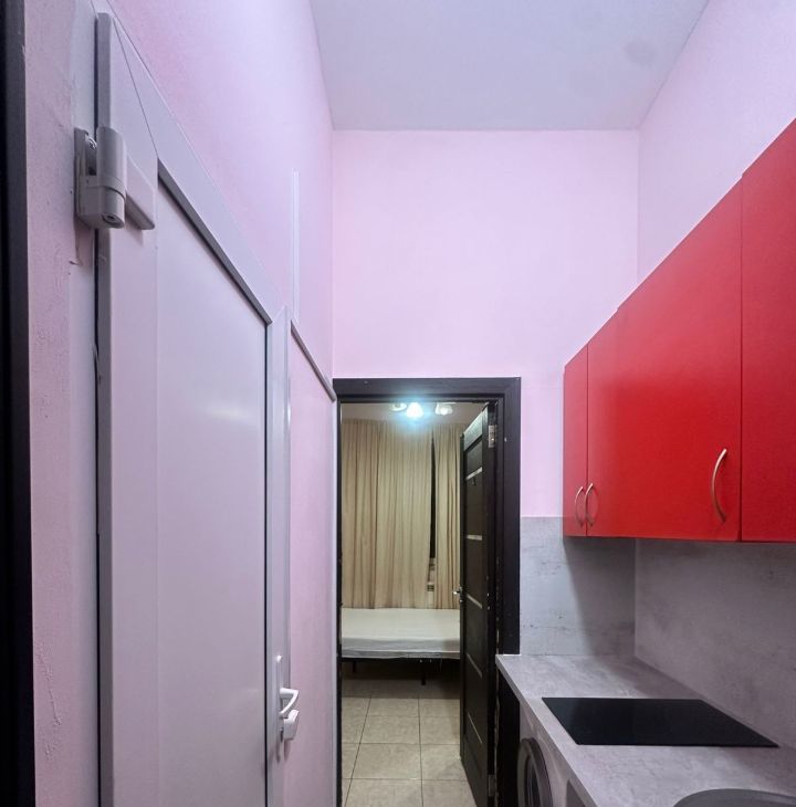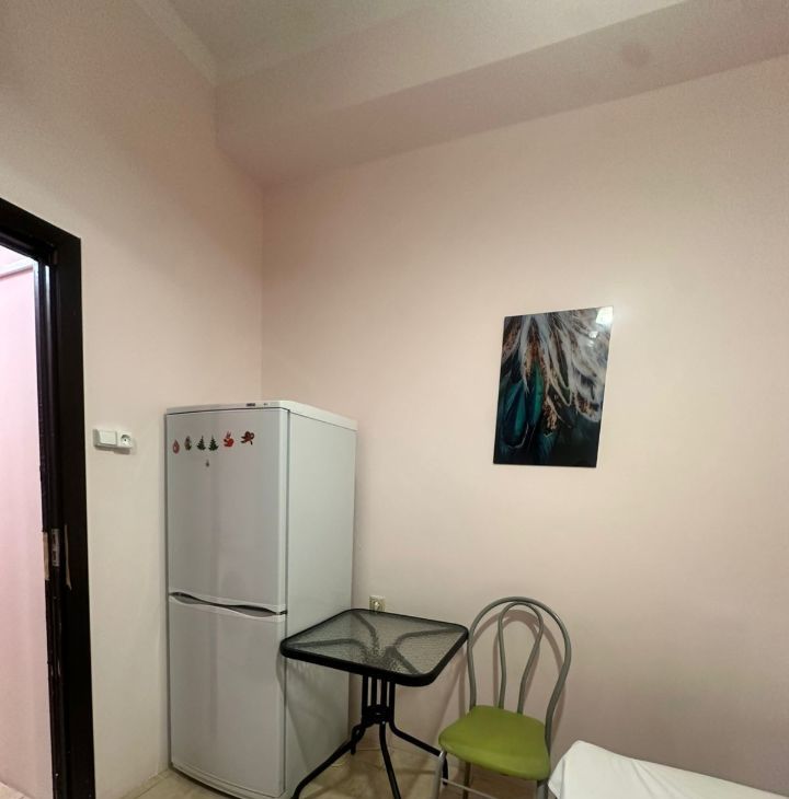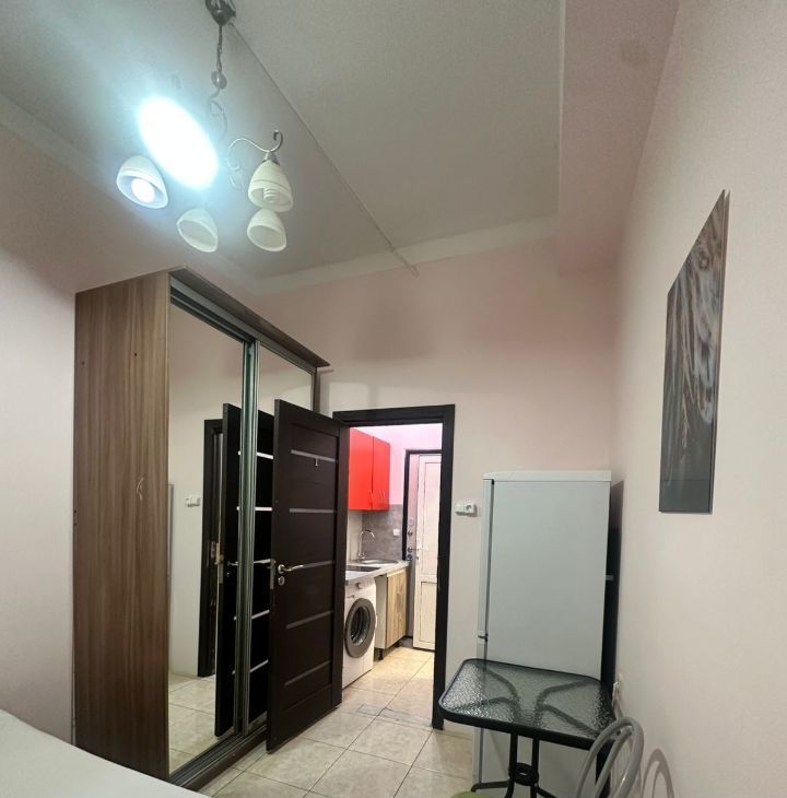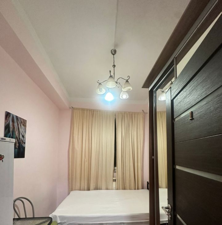 Квартира с косметическим ремонтом. В студии есть вся необходимая мебель, как в комнате, так и на кухне. Из техники — холодильник, телевизор и стиральная машина. Санузел совмещенный, оборудован душевой кабиной. Окна выходят во двор, поэтому в квартире тихо и комфортно. Подключен интернет, что особенно удобно для работы и отдыха.