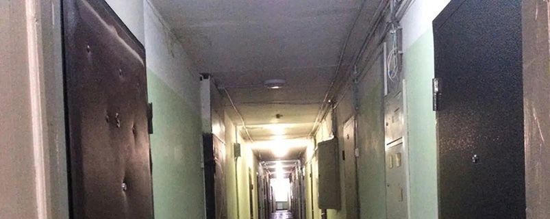 Дом - бывшее общежитие, планировка коридорного типа с общими балконами, расположенными в торцевой части дома.