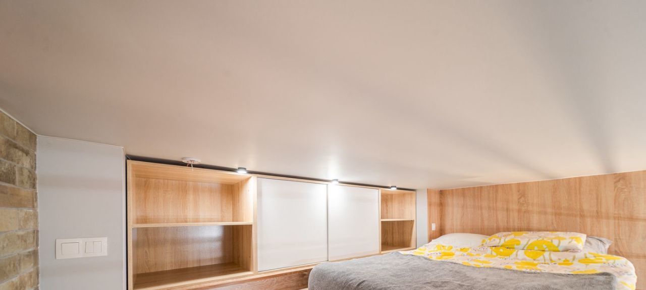 Большие окна выходят на улицу, в квартире много света и уютная атмосфера.