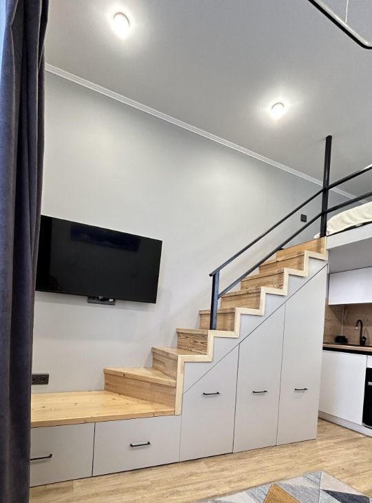 Сдается комфортная светлая двухуровневая студия с дизайнерским ремонтом на длительный срок.