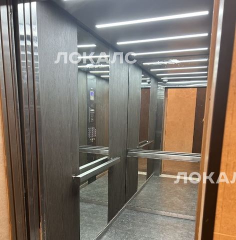 В доме просторная входная группа, три лифта, служба охраны, есть подземная парковка, много магазинов, кафе и салонов красоты.
