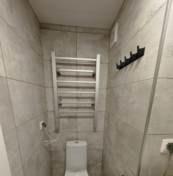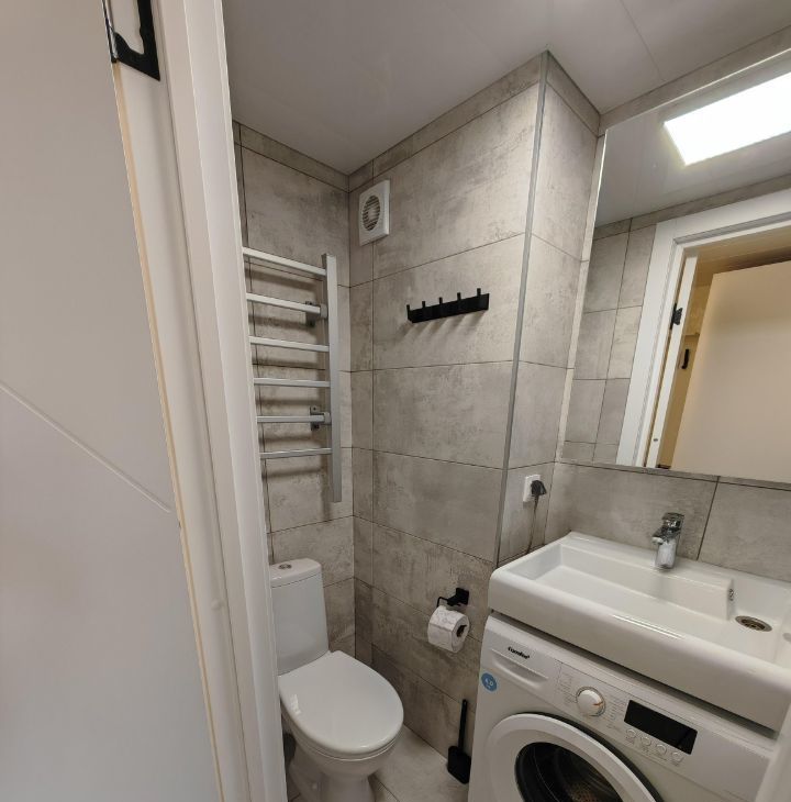 Есть вся необходимая мебель и техника для комфортного проживания: холодильник, стиральная машина, микроволновка, чайник, варочная электроплита, пылесос, сушилка, электрический полотенцесушитель. Стулья с последней картинки уже заказаны, но приедут в конце апреля.