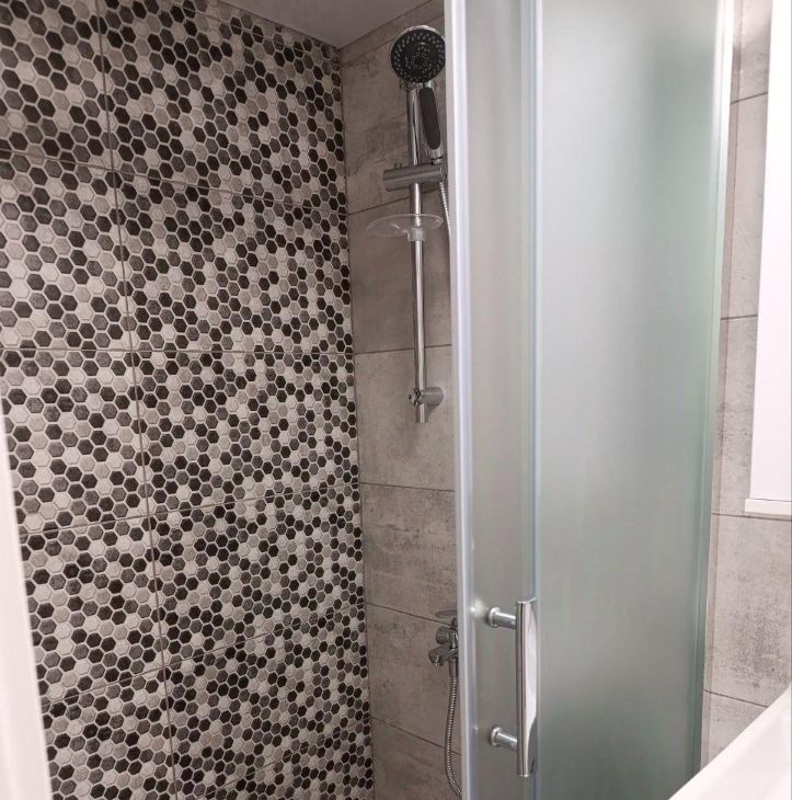 В квартире есть всё необходимое для комфортного проживания: современная кухня с мебелью и техникой, включая холодильник и стиральную машину. Жилая зона оборудована всей необходимой мебелью, а в санузле установлена душевая кабина.