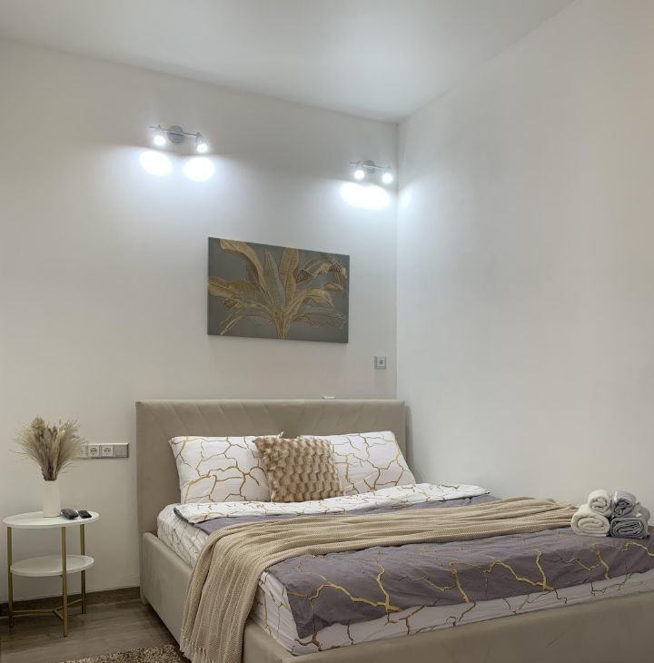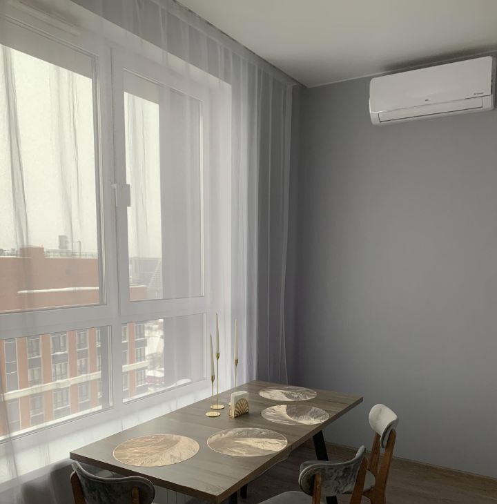 Студия полностью готова к проживанию: здесь есть необходимая мебель на кухне и в комнате, а также современная техника — кондиционер, холодильник, посудомоечная и стиральная машины, телевизор. В совмещенном санузле установлена душевая кабина. Высокоскоростной интернет обеспечит комфортную работу и досуг.