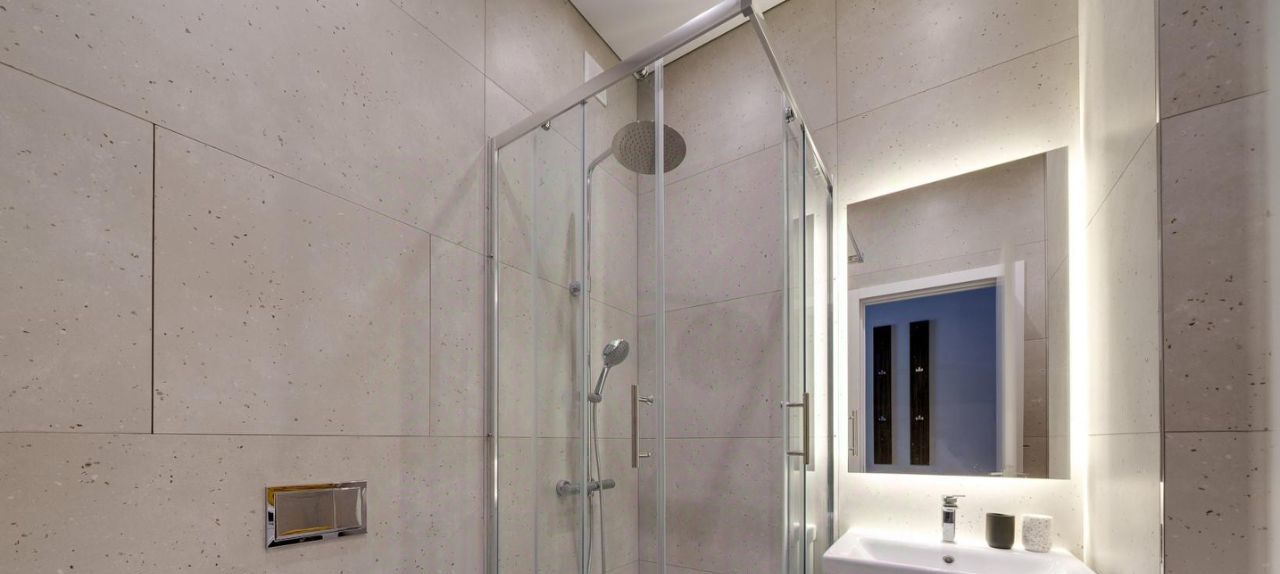 В студии совмещенный санузел с душевой кабиной.