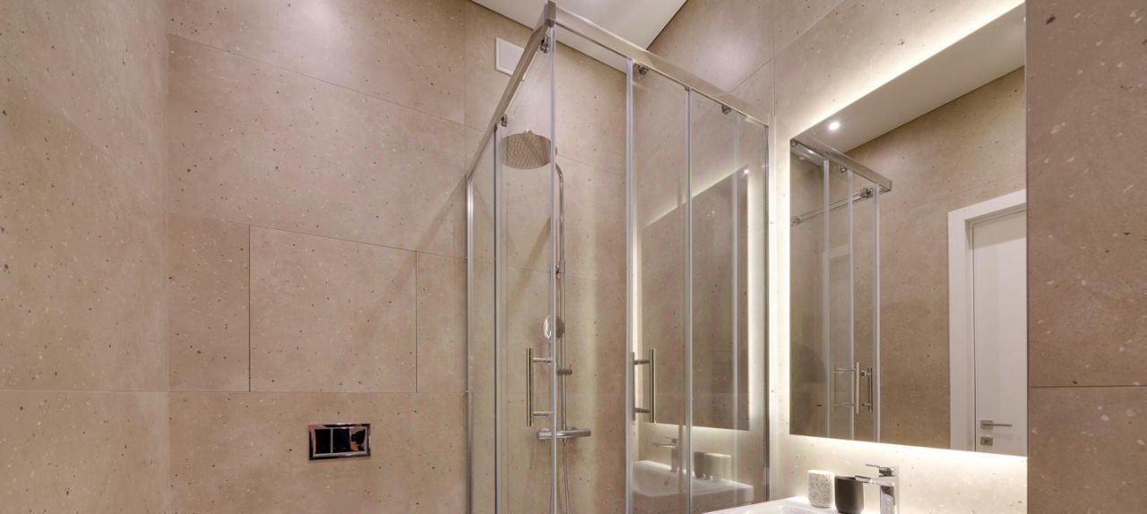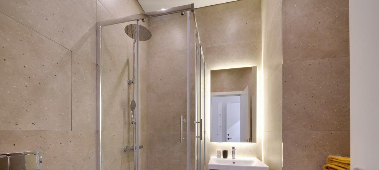 В студии совмещенный санузел с душевой кабиной.