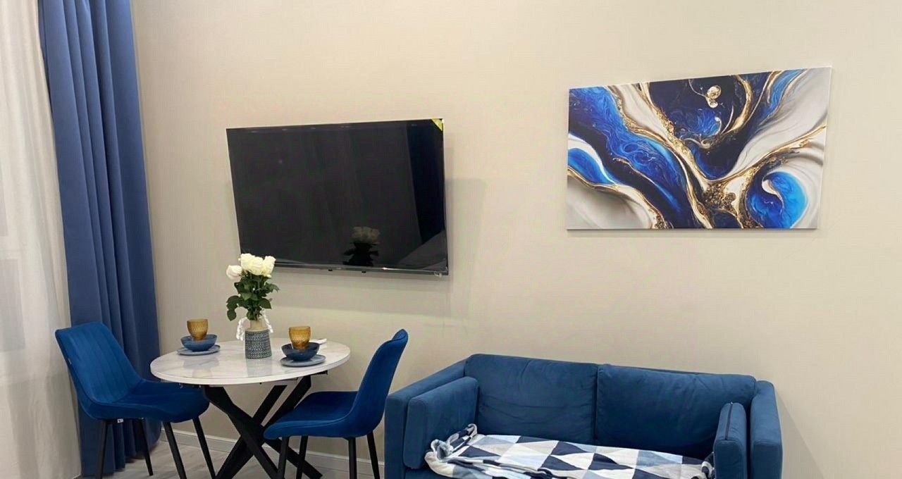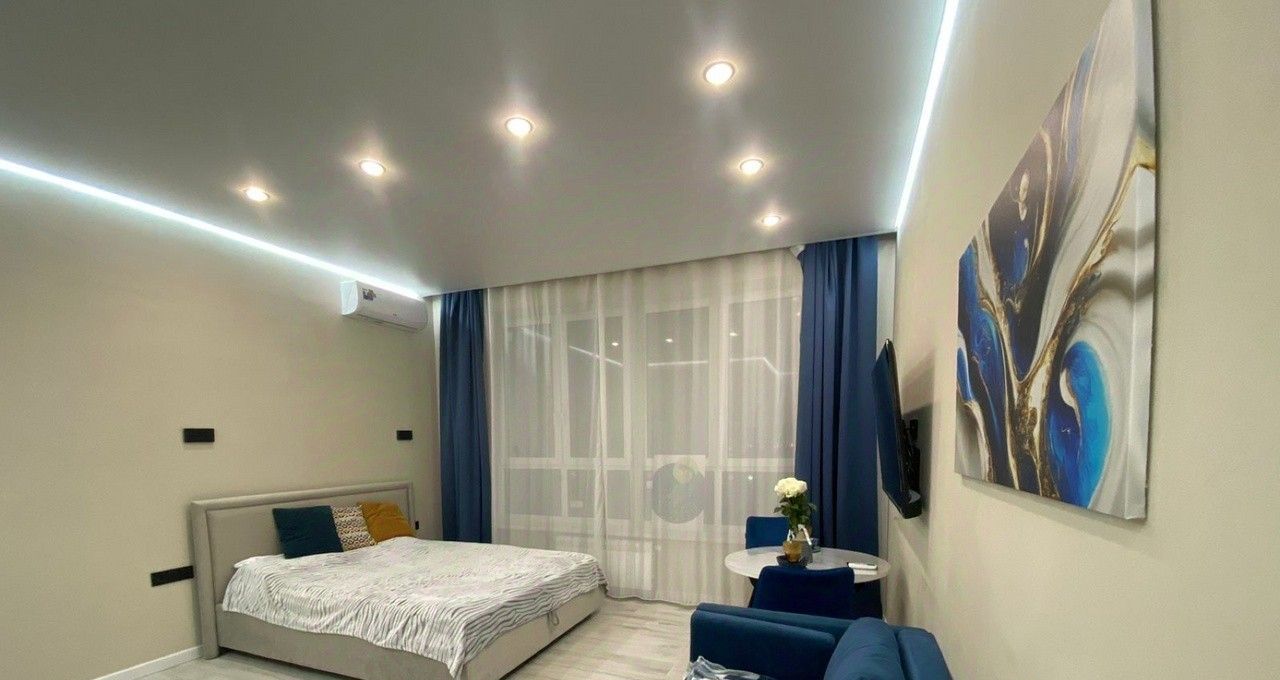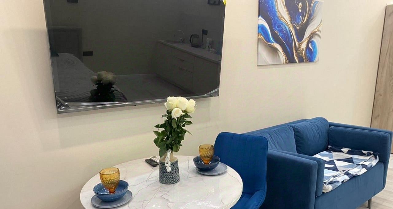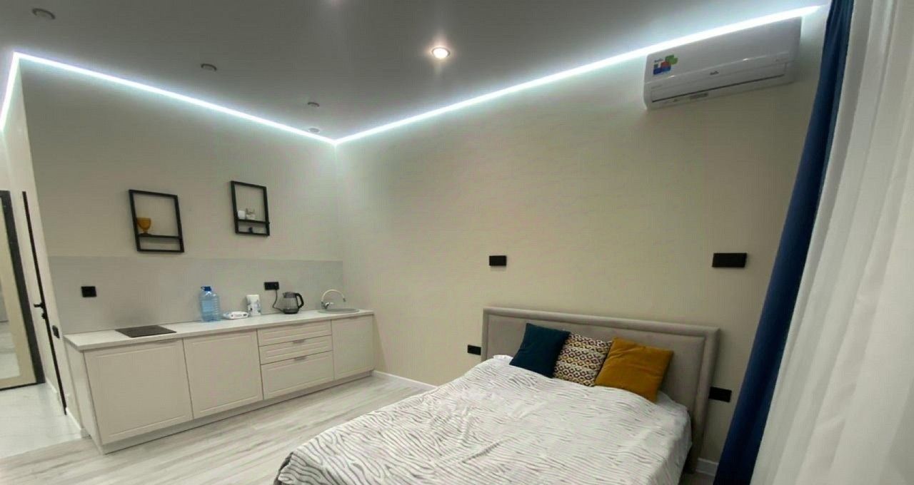 Студия меблирована и оснащена всем необходимым для проживания: кондиционер, стиральная машина, большой телевизор, сделан качественный ремонт!
