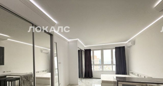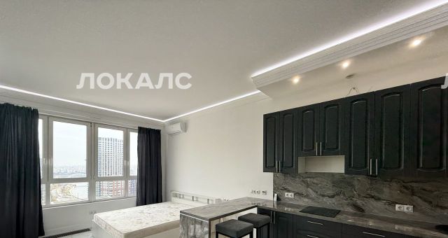 Сдается уютная студия в современном жилом комплексе, расположенном по адресу Россия, Москва, Шелепихинская набережная, 34к4. Апартаменты находятся на 24-м этаже нового дома, построенного в 2021 году, с потрясающим видом на город. Общая площадь квартиры составляет 36 кв. м, из которых 20 кв. м — жилая зона и 10 кв. м — кухня. Высокие потолки (3.2 м) добавляют простора и света.