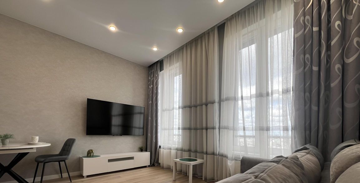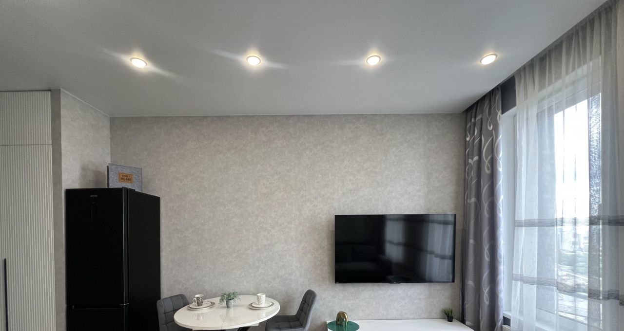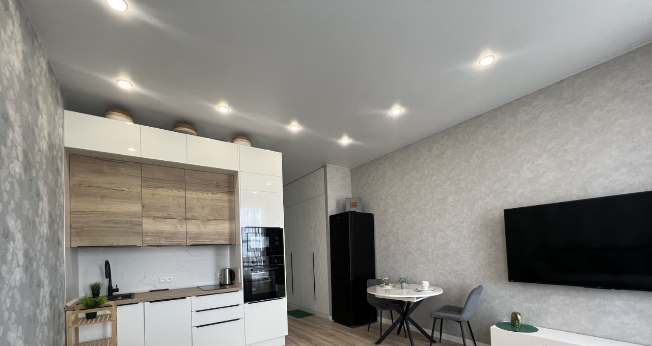 Сдаётся стильная студия с дизайнерским ремонтом в новом доме 2023 года постройки. Квартира располагается на 40-м этаже 41-этажного здания и занимает площадь 29 кв. м. Просторные окна выходят на улицу, а высота потолков в 3,2 метра добавляет ощущение объёма и света. В квартире есть всё необходимое для комфортной жизни, включая совмещённый санузел с душевой кабиной.