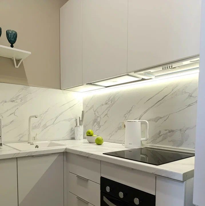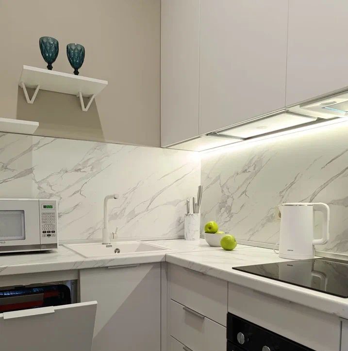 Бытoвая техника: стиральная машина, посудомоечная машина,холодильник, варочная панель,духовой шкаф, кондиционер, электрический чайник, СВЧ. Есть все необходимое для комфортного проживания, в т.ч. посуда и постельное белье.